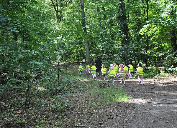 Unsere Kita liegt direkt am Jungfernheide Forst. Regelmäßige Ausflüge in den Wald und die tägliche Nutzung der großen und naturnahen Spielplätze gehören zum Kita-Alltag.